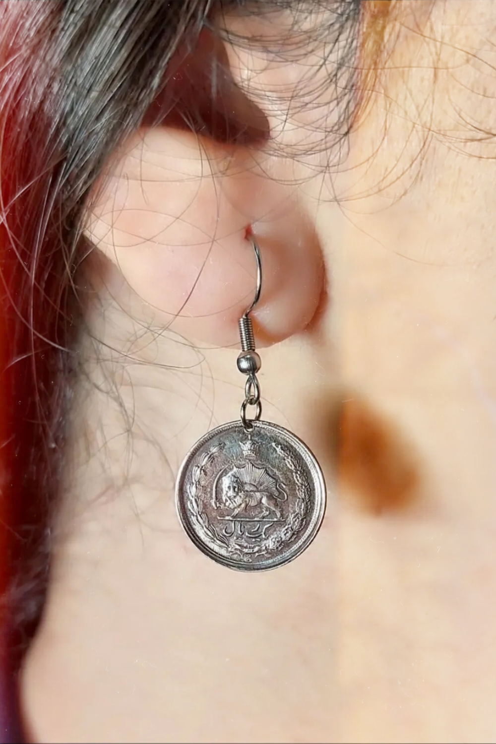 گوشواره سکه ای با قاب برنز
