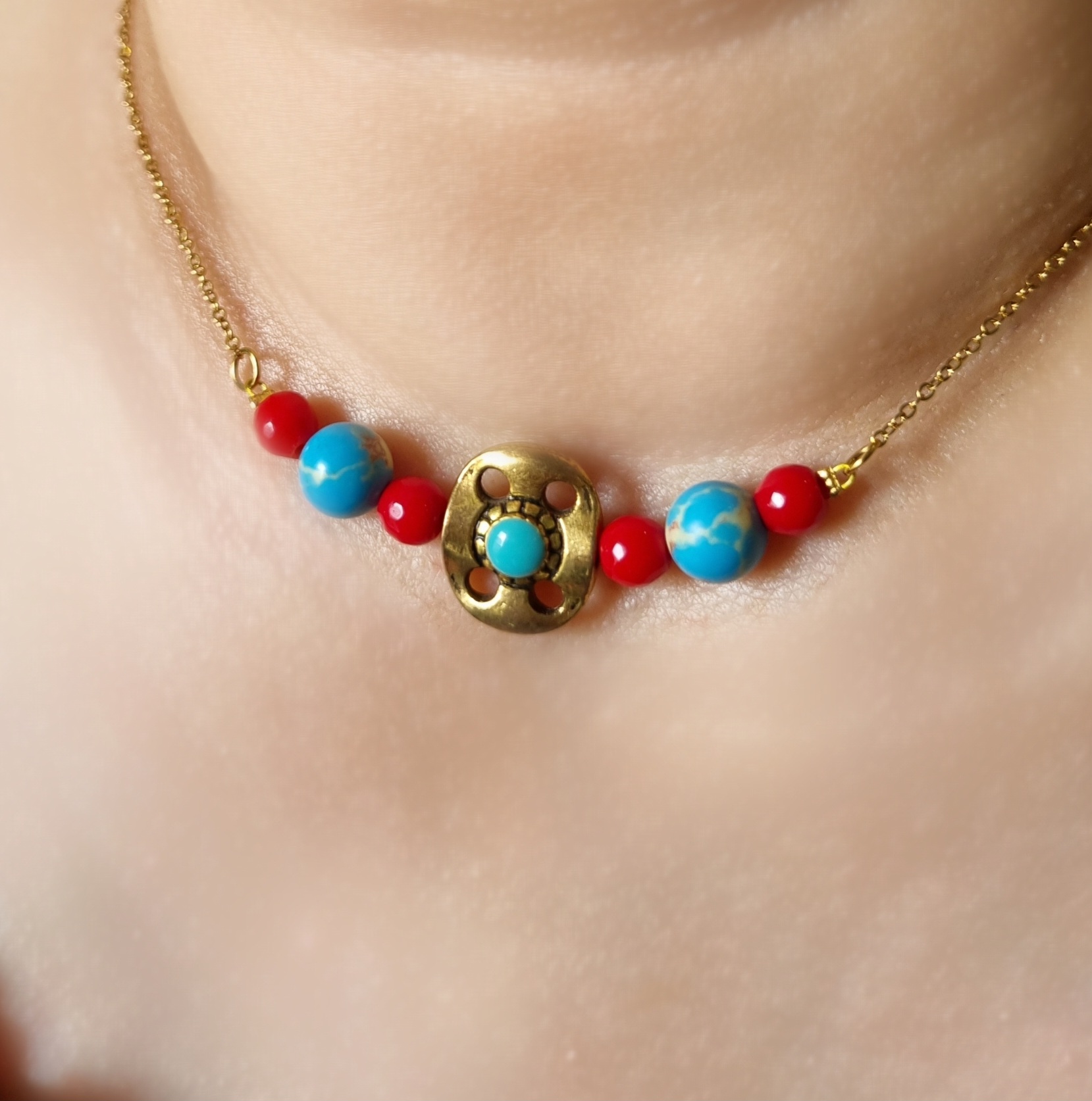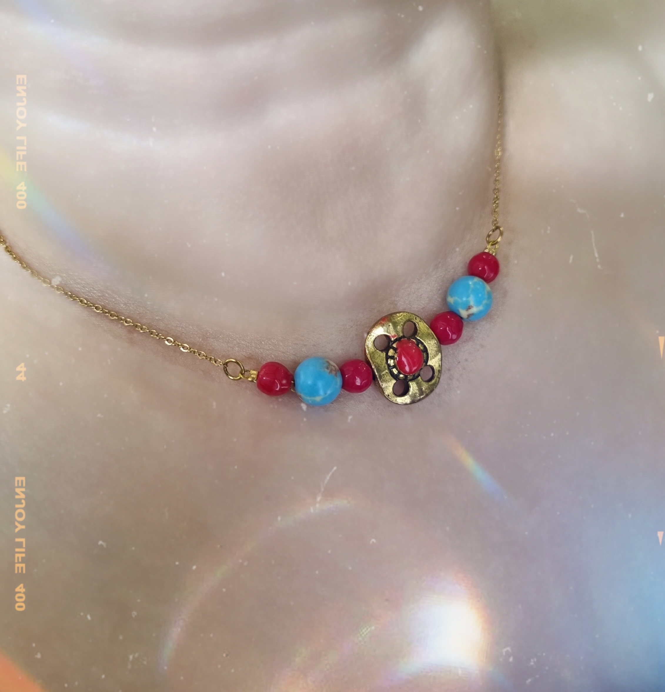 دستهبندی: گردنبند فیروزه و مرجان با آویز تبتی